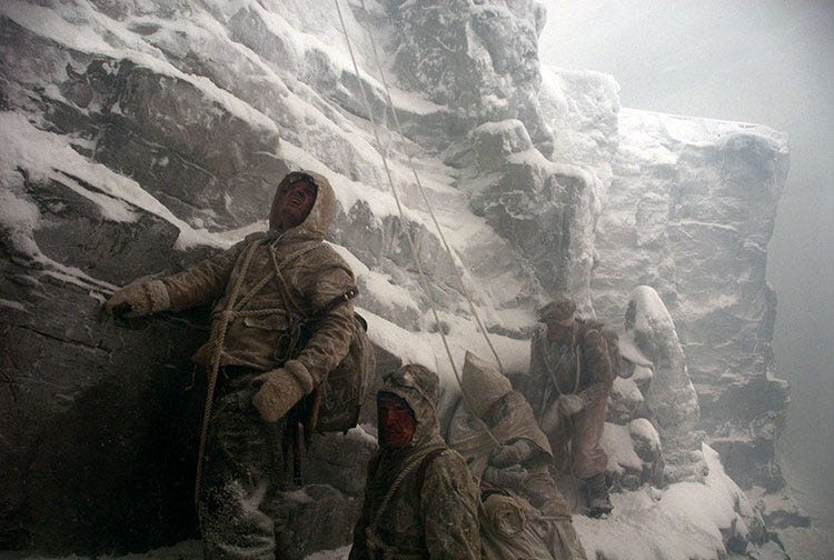 A perfect example of this is the 2008 German movie Northface, about four mountaineers who try to climb the impossibly steep, over-a-mile-high, north face of the Eiger mountain in the Alps.